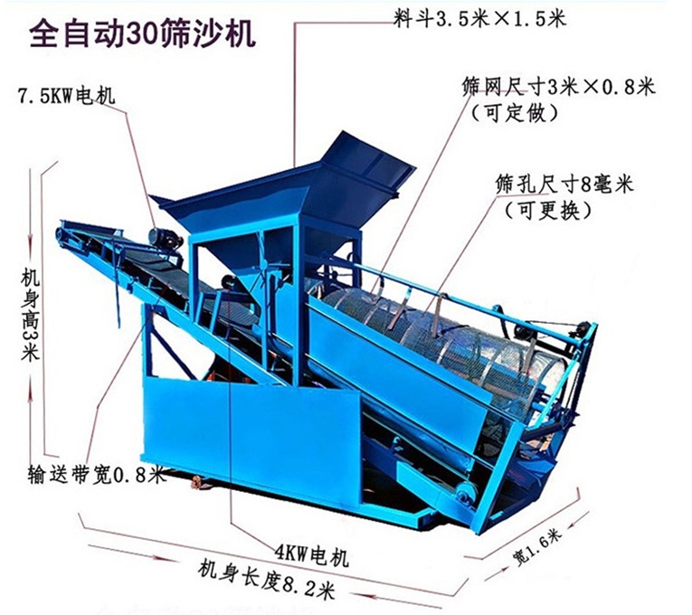 核心的篩分系統(tǒng)采用攪拌機(jī)攪拌原理,攪拌筒里面的東西相互摩擦作用。
